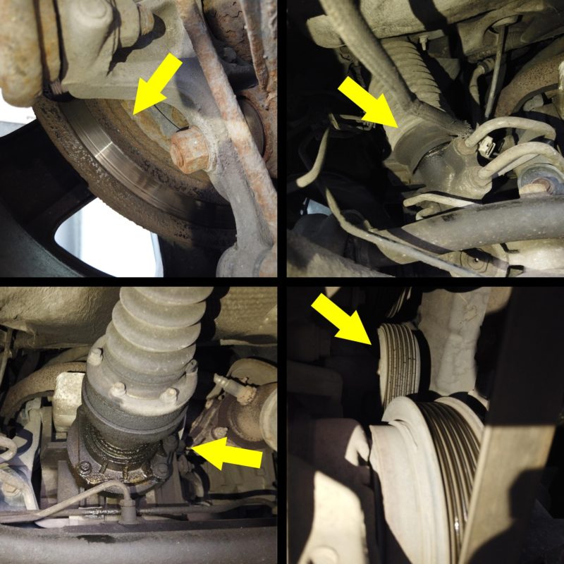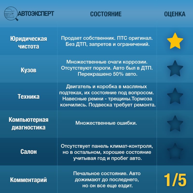 Все печально — авто требует серьезных вложений. Двигатель и коробка имеет масляные подтеки, их состояние под вопросом. Навесные ремни — трещины. Тормоза полностью кончились. Подвеска требует ремонта.