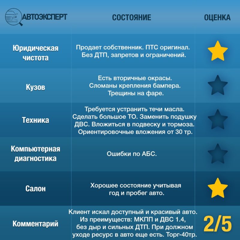 Требуется устранить течи масла. Сделать большое ТО. Заменить подушку ДВС. Вложиться в подвеску и тормоза. Ориентировочные вложения от 30 тр.
